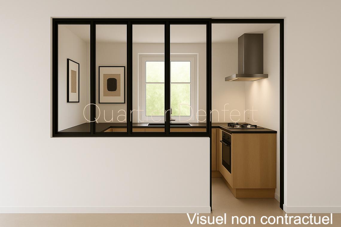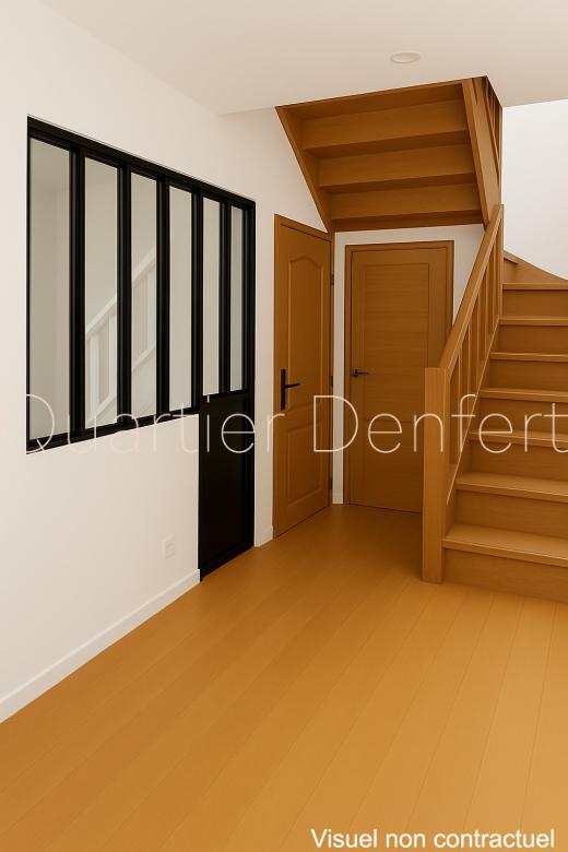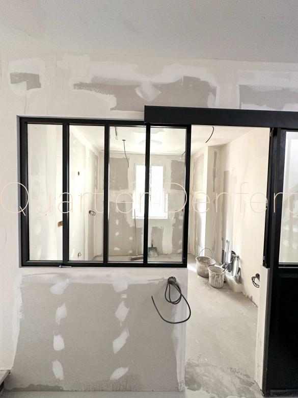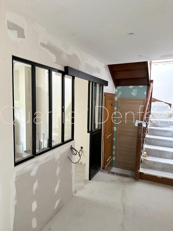 Le 2ᵉ étage comprend une entrée, un espace cuisine (à installer) derrière une verrière atelier, une grande pièce de vie et un WC.