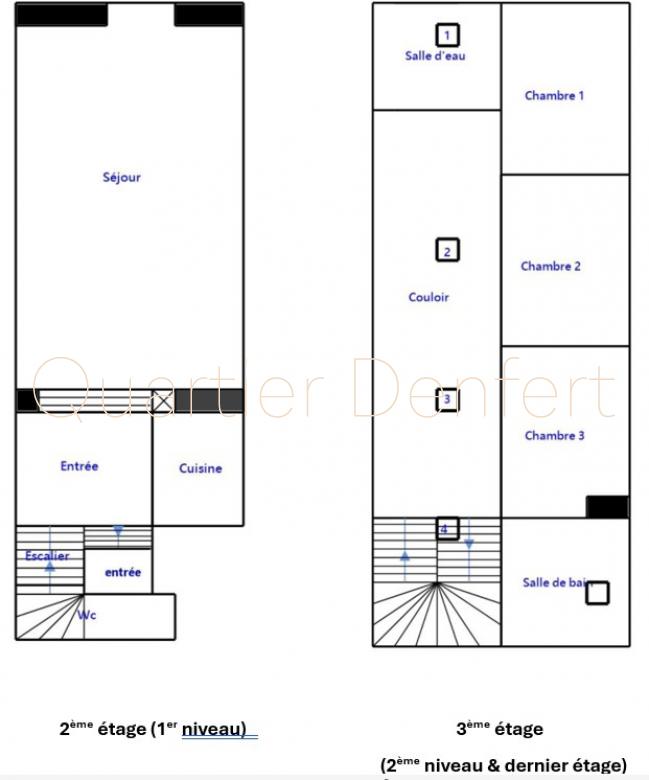 Le bien occupe les 2ᵉ et 3ᵉ étages, derniers niveaux d’un immeuble ancien, dans un quartier vivant et commerçant.