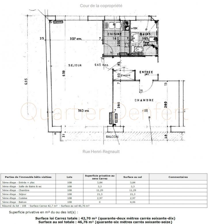 Je vous propose à la vente cet appartement, situé au 5ᵉ étage avec ascenseur d’un immeuble bien entretenu des années 70, rue Henri-Regnault, Paris 14ᵉ.