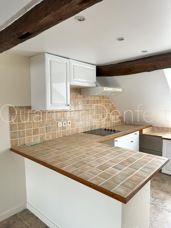 Le deuxième niveau offre un coin cuisine équipée ouvert sur le séjour, une chambre, un dégagement avec placard, une salle de bain et un WC séparé.
